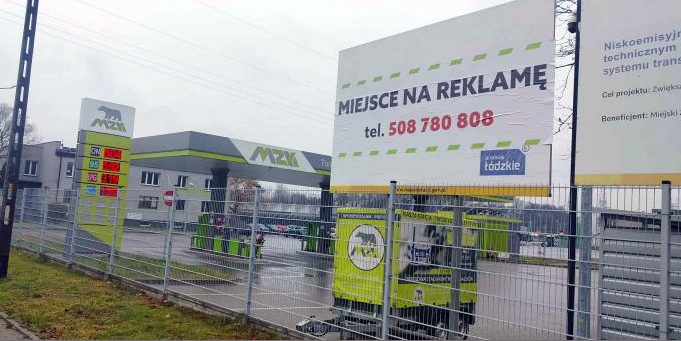 - Reklama na pozostałej części ogrodzenia Miejskiego Zakładu Komunikacyjnego – 100 zł netto/m² na okres jednego miesiąca.