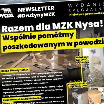 - Pomoc dla poszkodowanych w klęskach żywiołowych – pracownicy MZK zorganizowali zbiórkę darów dla rodzin pracowników MZK w Nysie, którzy ucierpieli w wyniku powodzi w 2024 roku.